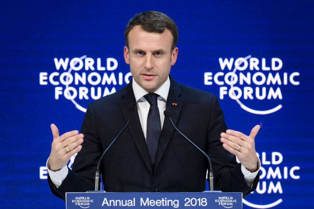 French President Emmanuel Macron addresses the annual World Economic Forum (WEF) on January 24, 2018 in Davos, eastern Switzerland. / AFP PHOTO / Fabrice COFFRINI